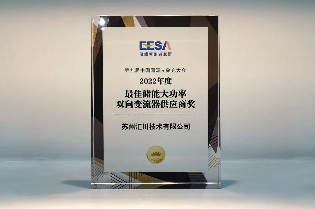 11月12日,在第九屆中國國際光儲充大會年度頒獎盛典上,匯川技術憑借在儲能PCS領域多年的深耕,以及卓越的表現,榮獲“2022年度最佳儲能大功率雙向變流器供應商”獎。